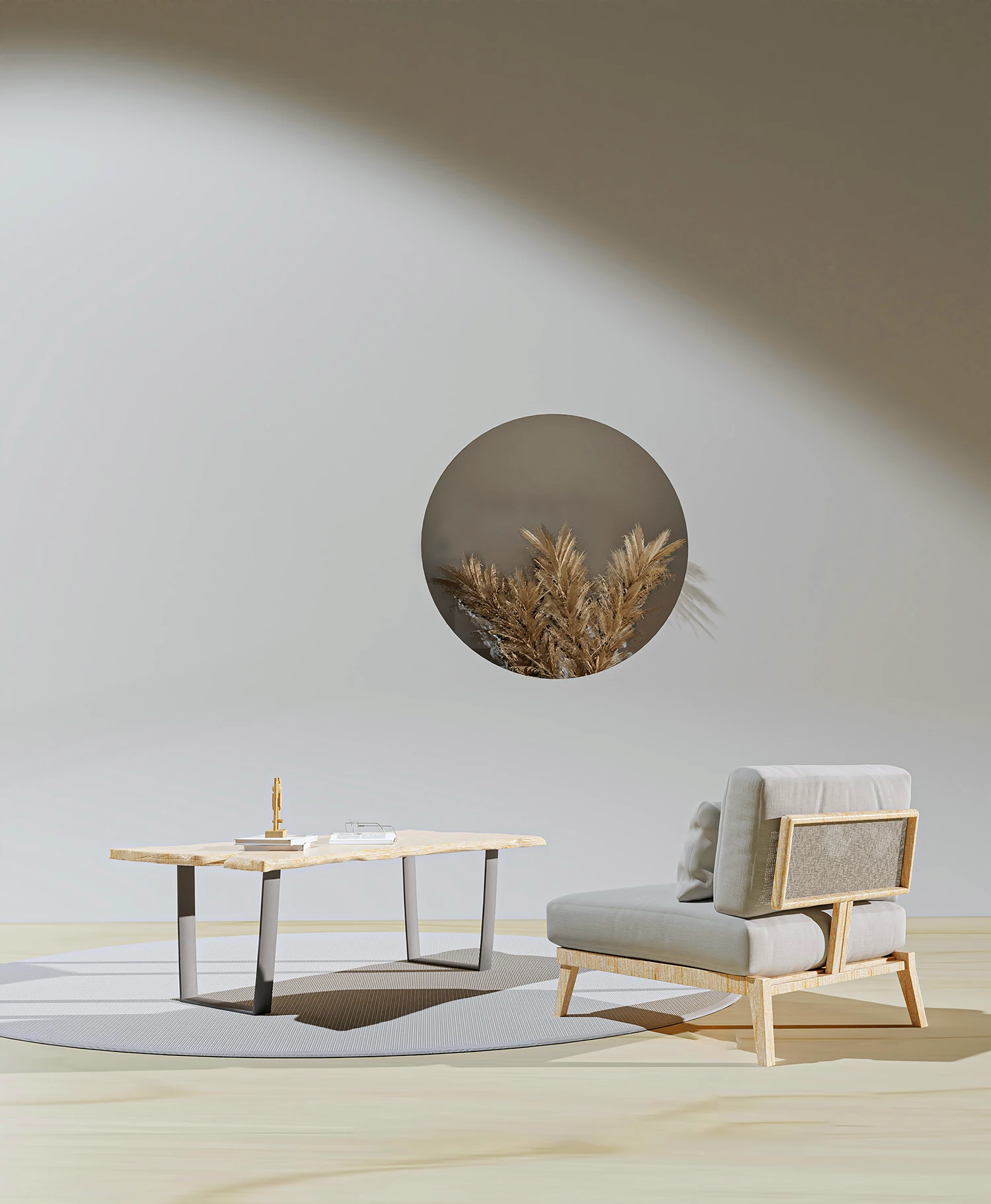 The RAWNAQ Rectangular Coffee Table reflects the collection’s architectural sensibility through clean lines and a grounded stance. Crafted from solid wood, the table reinforces the horizontal rhythm of the seating while offering a generous, functional surface. Its low profile and strong proportions create a sense of stability and cohesion, allowing it to integrate seamlessly within modular or linear arrangements. The natural wood grain remains central, highlighting craftsmanship and material honesty. Both practical and sculptural, the rectangular coffee table completes the RAWNAQ collection with clarity, balance, and understated elegance.